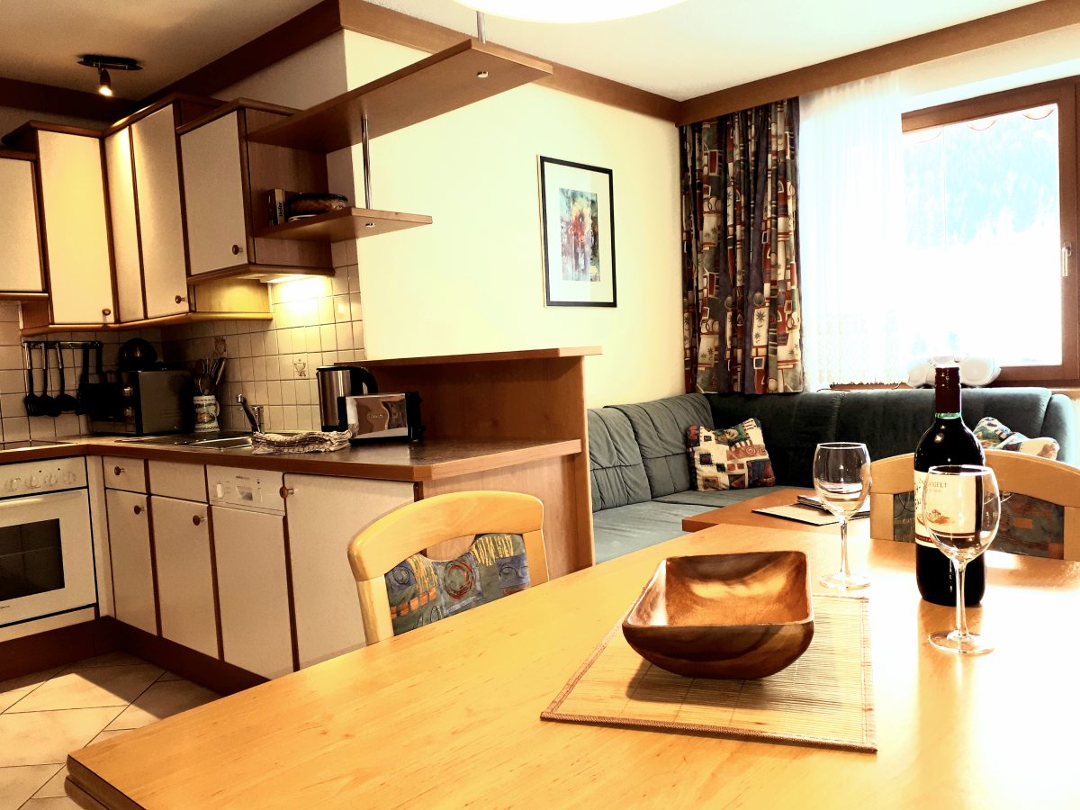 Die Wohnung Appartement ca.45m² ist mit Balkon, ein Vorraum mit Gardarobe, ein Zweibettzimmer und ein kleines Zimmer mit Stockbett, Dusche/WC, eine gut ausgestattete Küche mit Micro, Geschirrspüler E-Herd, Wasserkocher usw. ein Esstisch eine Couch, Sat-Tv mit Radio, CD Player.